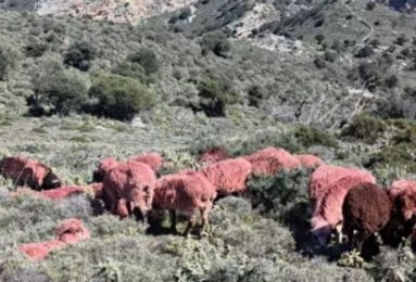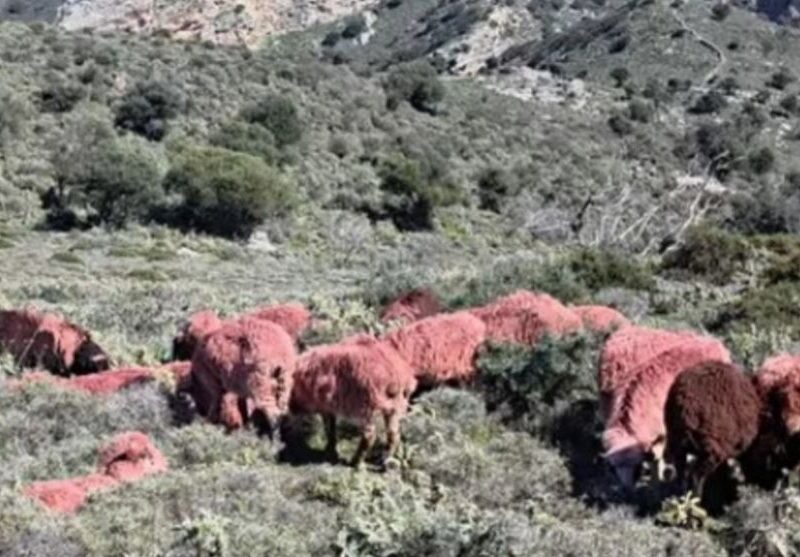 Ένας κτηνοτρόφος στην Κρήτη προσπάθησε να προστατευτεί από τις ζωοκλοπές και έβαψε το κοπάδι με τα πρόβατά του, με κόκκινο χρώμα. Όπως μεταδίδει η