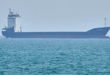 Το υπό ιρανική σημαία πλοίο μεταφοράς εμπορευματοκιβωτίων Touska, το οποίο κατέλαβαν και συνέλαβαν προχθές, Κυριακή,