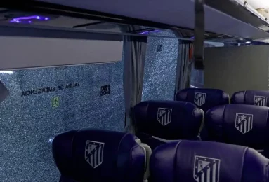 Οπαδοί της Μπαρτσελόνα πέταξαν αντικείμενα στο πούλμαν της Ατλέτικο Μαδρίτης, με αποτέλεσμα να σπάσουν τζάμια και να πέσουν θραύσματα γυαλιών στα μέλη της