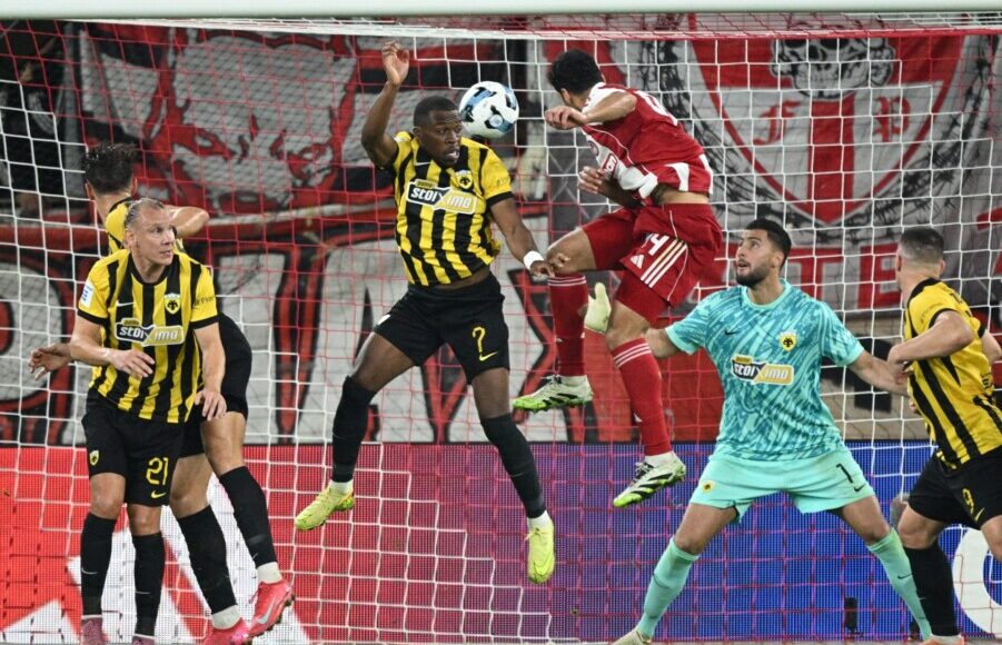 O Oλυμπιακός μπήκε δυνατά στο ντέρμπι και στο 9′ απείλησε για πρώτη φορά με την κεφαλιά του Ελ Καμπί να καταλήγει στα χέρια του Στρακόσα. Στο 16′ ο Μαροκινός φορ βρέθηκε και πάλι σε θέση βολής μετά από πάσα του Ταρέμι αλλά ο κίπερ της ΑΕΚ έκανε μία υπέροχη επέμβαση.