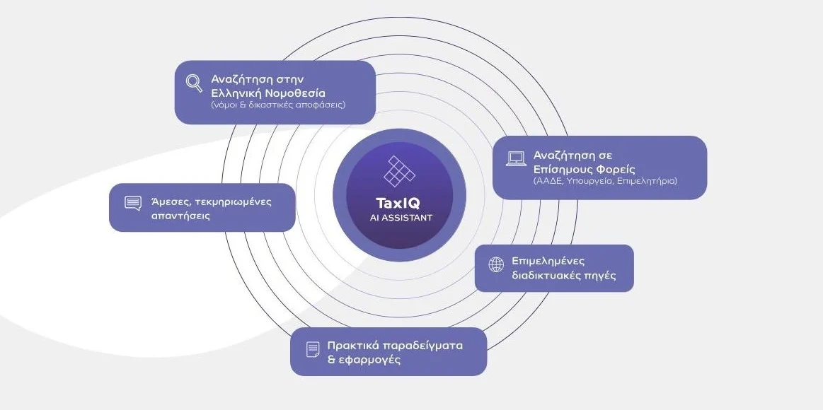 Το TaxIQ, ο πρώτος ΑΙ φορολογικός σύμβουλος στην Ελλάδα, έχει σχεδιαστεί για να παρέχει «απαντήσεις» βασισμένες στην ισχύουσα ελληνική νομοθεσία και την επίσημη νομολογία, δίνοντας στους επαγγελματίες τη δυνατότητα να λαμβάνουν αποφάσεις με ταχύτητα, αξιοπιστία και ασφάλεια.