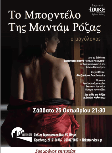 Το θέατρο act φιλοξενεί τη παράσταση «Το Μπορντέλο της Μαντάμ Ρόζας» βασισμένο στο εμβληματικό βιβλίο της Σπεράντζας Βρανά «Το Τίμιο Μπορντέλο», το οποίο επιστρέφει ξανά ως ένας καθηλωτικός μονόλογος. Μετά από δύο συνεχόμενες χρονιές γεμάτες επιτυχίες, εξαιρετικές κριτικές και θερμή ανταπόκριση από το κοινό, το έργο επιστρέφει για τρίτη χρονιά στο Θέατρο Αλκμήνη. Μια παράσταση που έχει συγκινήσει βαθιά όσους την παρακολούθησαν, καθώς αποκαλύπτει με αλήθεια και τρυφερότητα έναν κόσμο που παραμένει στο περιθώριο, και παράλληλα φωτίζει την αξιοπρέπεια και την ψυχή μιας γυναίκας που επιβίωσε.