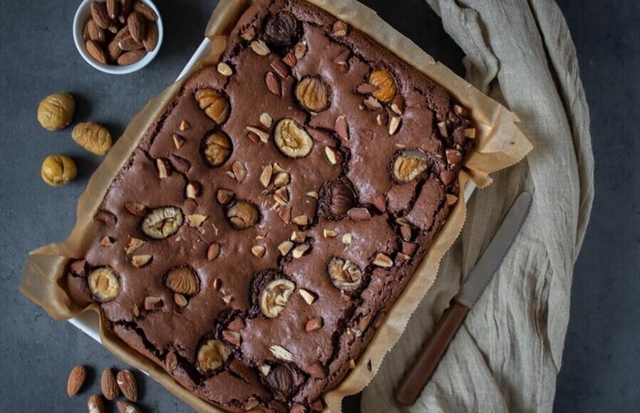 Σοκολατένιο brownie με κάστανα και αμύγδαλα