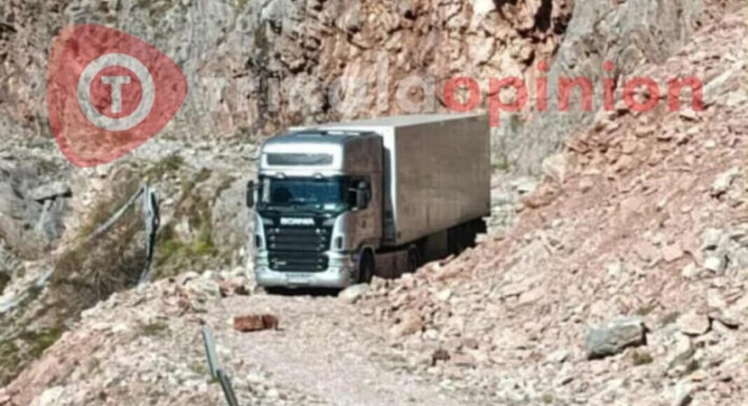Μάλιστα, η νταλίκα παρέμεινε εγκλωβισμένη όλη τη νύχτα, καθώς τεράστιοι βράχοι μπλοκάρουν τον δρόμο, ενώ η όπισθεν είναι σχεδόν αδύνατη στο στενό σημείο.