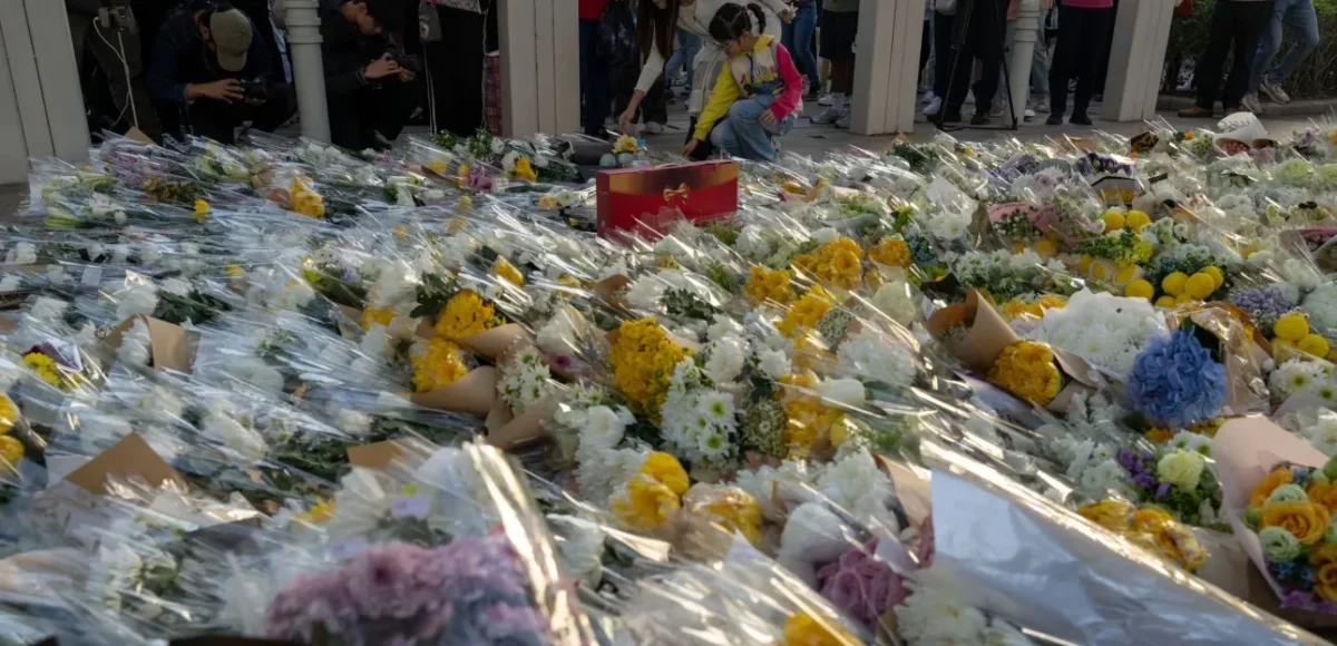 Στο χώρο του οικιστικού συγκροτήματος, οικογένειες και πενθούντες συγκεντρώθηκαν για να αφήσουν λίγα λουλούδια.