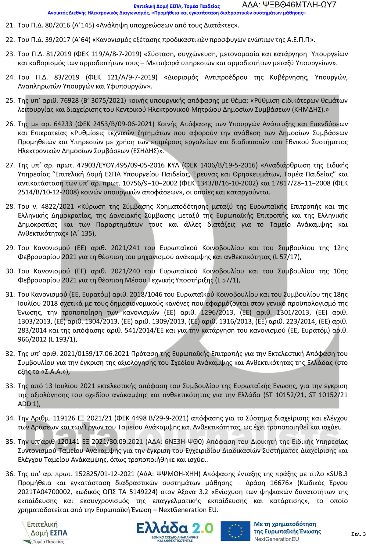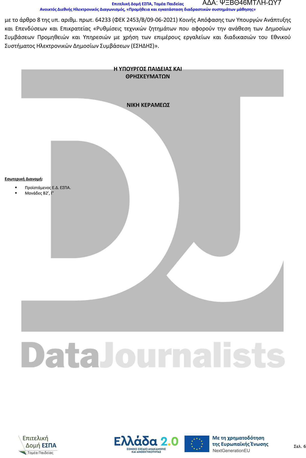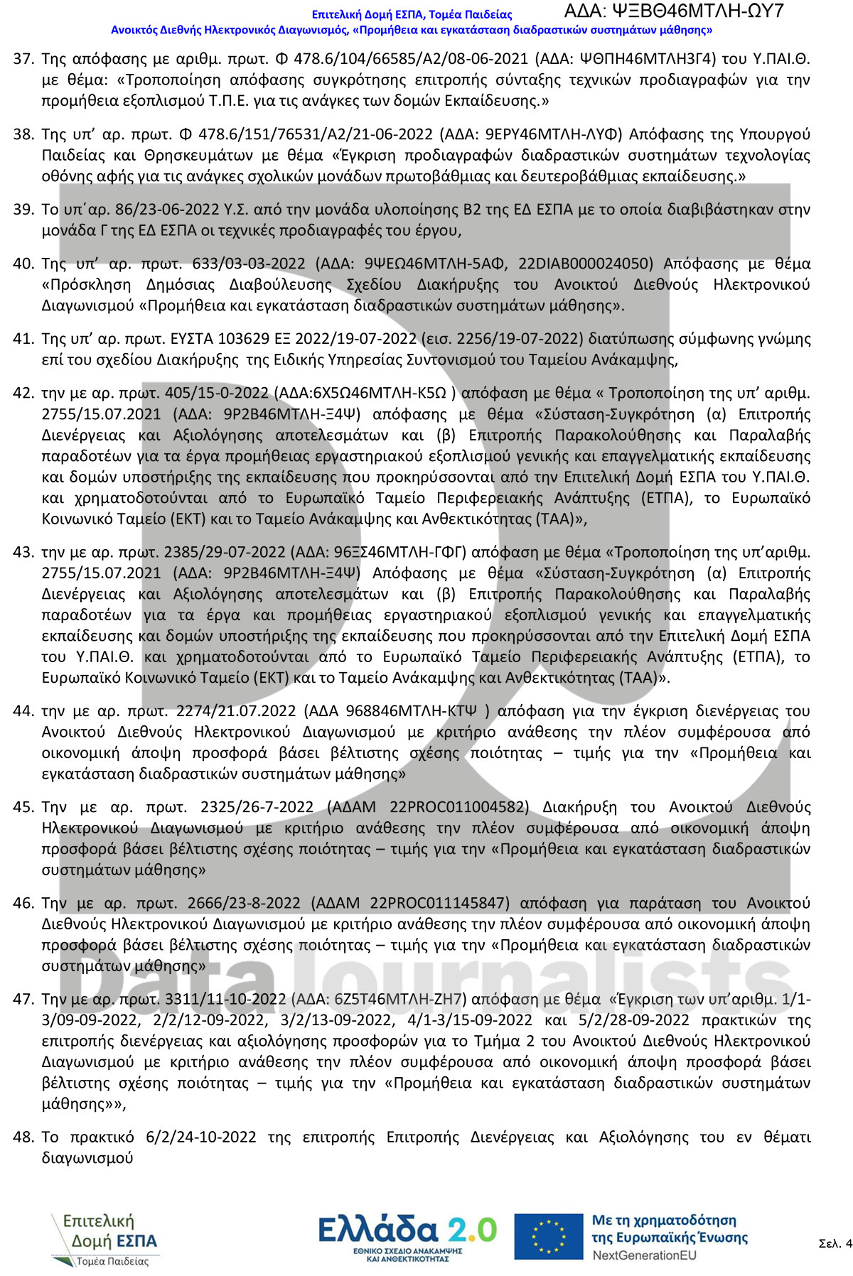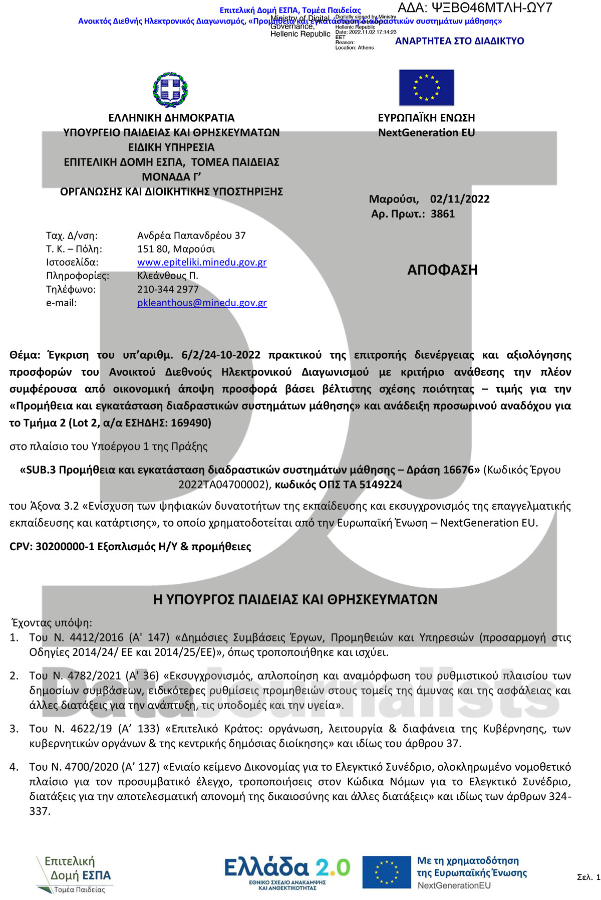 Στις 26 Ιουλίου του 2022 το υπουργείο Παιδείας προχώρησε στην προκήρυξη ανοικτού ηλεκτρονικού διαγωνισμού για την «προμήθεια και εγκατάσταση διαδραστικών συστημάτων μάθησης». Συγκεκριμένα, το έργο αφορούσε στην εγκατάσταση 36.000 διαδραστικών συστημάτων μάθησης, συμπεριλαμβανομένων λευκών πινάκων, φορητών υπολογιστών, διαδραστικών προβολέων και εσωτερικών καλωδίων σε αίθουσες διδασκαλίας σχολείων πρωτοβάθμιας και δευτεροβάθμιας εκπαίδευσης.