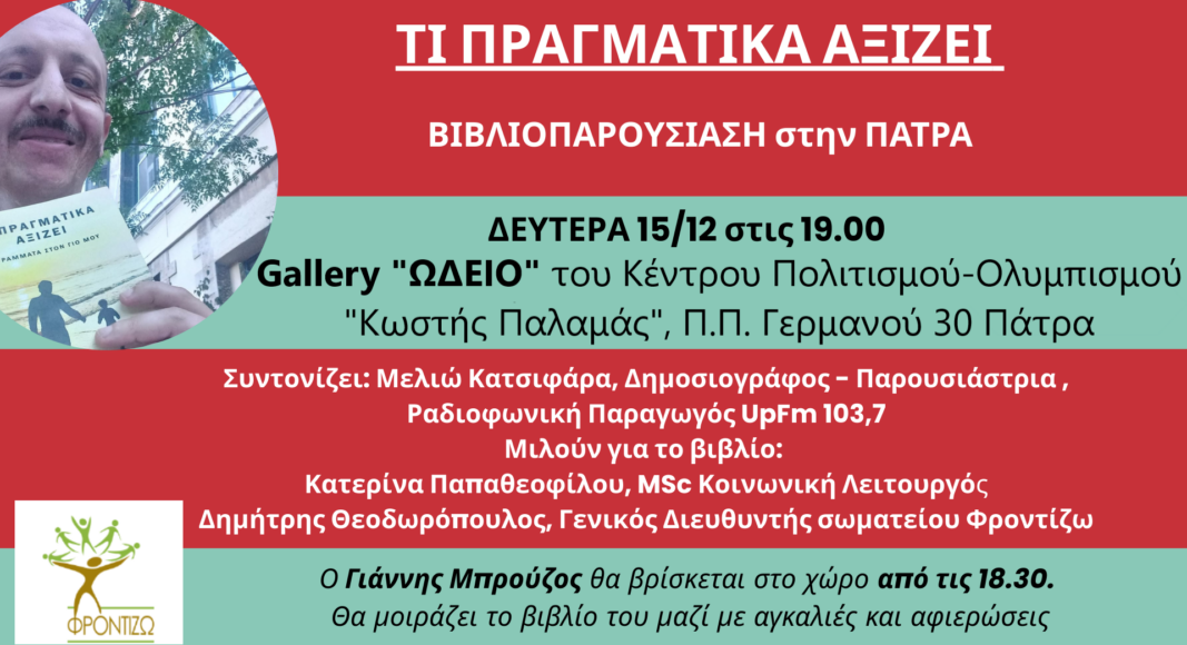Το Κοινωφελές Σωματείο Φροντίζω σας προσκαλεί στην παρουσίαση του βιβλίου «Τι