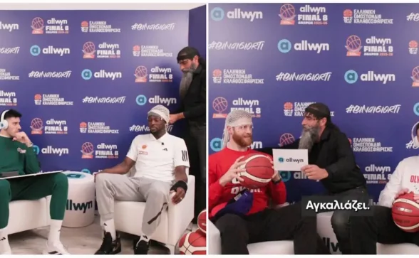 Φορώντας παραδοσιακό σαρίκι στο κεφάλι, οι Τζέριαν Γκραντ και Τόμας Γουόκαπ «μεταμορφώθηκαν» σε Κρητικούς και υπό το βλέμμα των Παναγιώτη