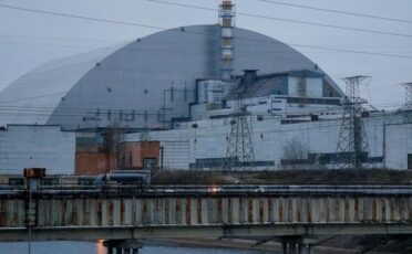 Tο προστατευτικό κέλυφος στο κατεστραμμένο πυρηνικό εργοστάσιο του Τσερνόμπιλ, στην εμπόλεμη