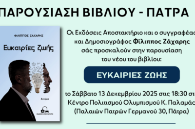 ΠΑΡΟΥΣΙΑΣΗ ΒΙΒΛΙΟΥ ''ΕΥΚΑΙΡΙΕΣ ΖΩΗΣ'' του συγγραφέα και δημοσιογράφου Φίλιππου Ζάχαρη στη