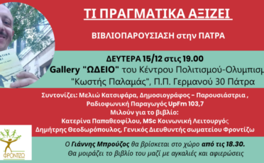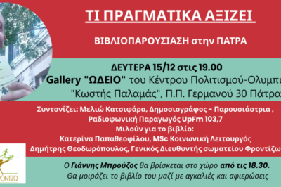 Παρουσίαση Βιβλίου «Τι πραγματικά αξίζει-24 γράμματα για το γιο μου»! στην Πάτρα Το