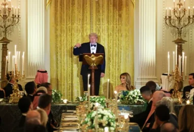 Ο πρόεδρος των ΗΠΑ, Ντόναλντ Τραμπ παρέθεσε ένα επίσημο δείπνο το βράδυ της Τρίτης 18.11.2025 στον Λευκό Οίκο προς τιμήν του πρίγκιπα διαδόχου της Σαουδικής Αραβίας, Μοχάμεντ μπιν Σαλμάν, στο οποίο παρευρέθηκαν